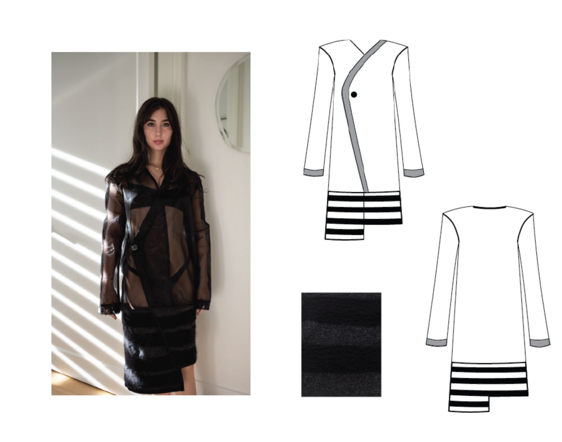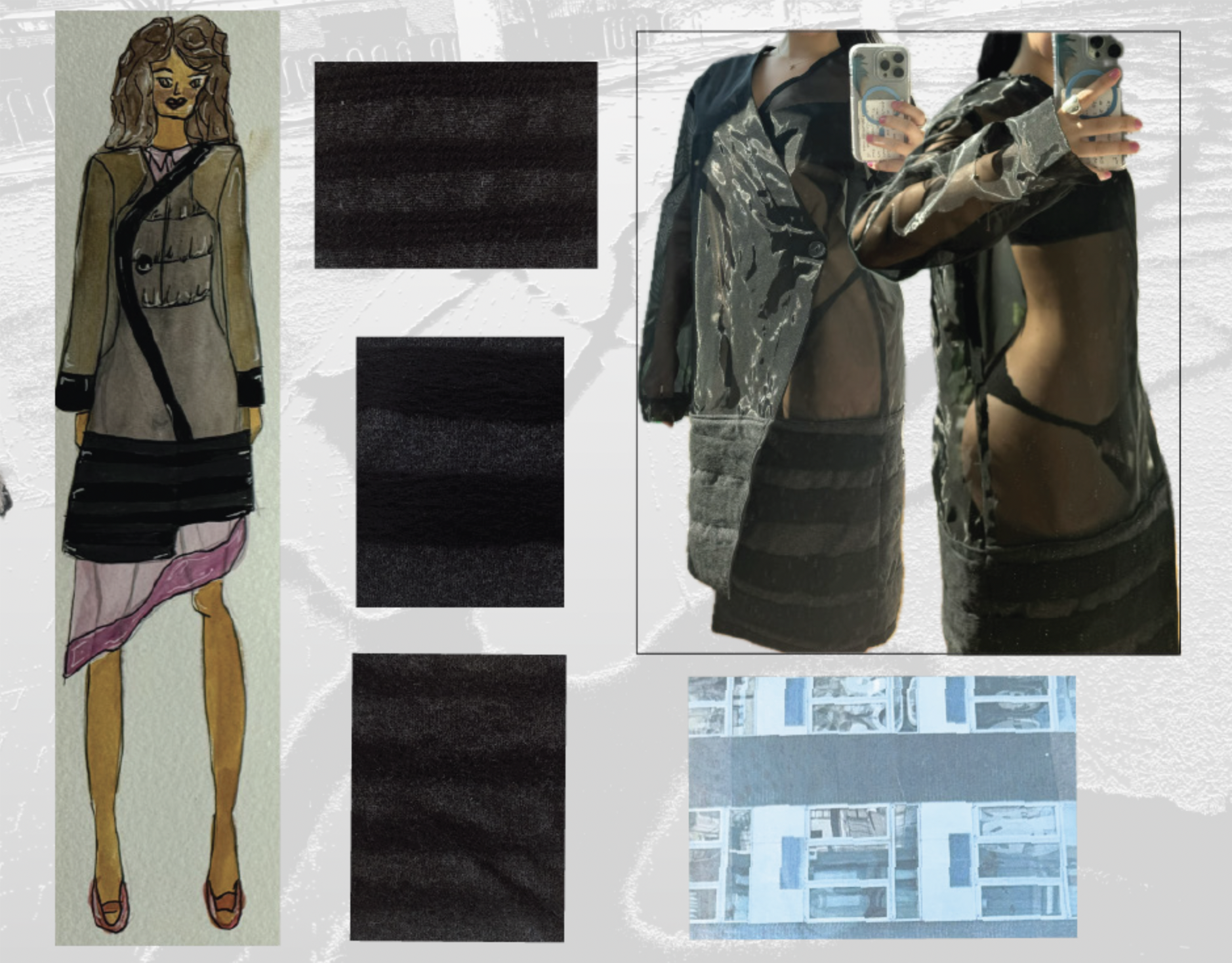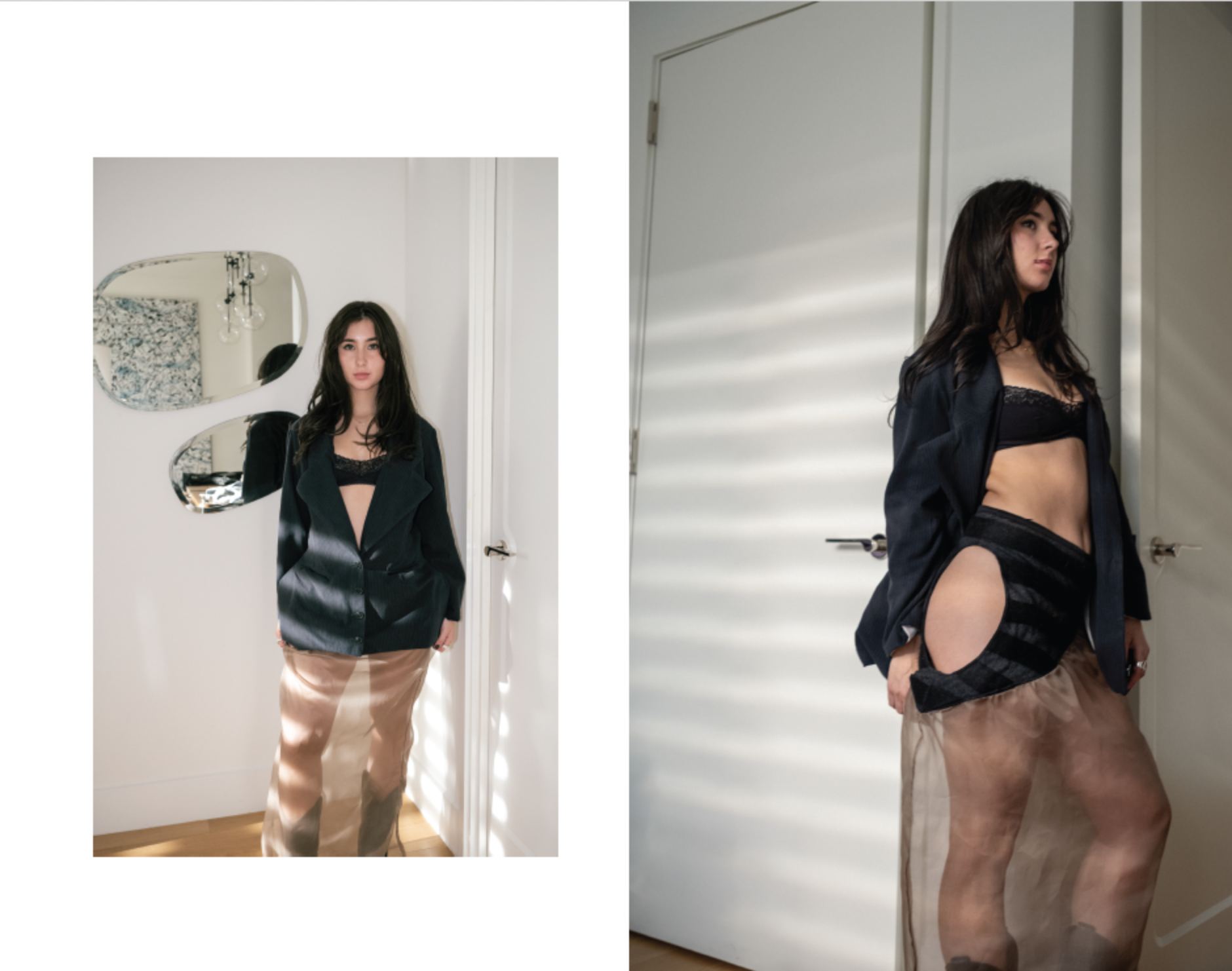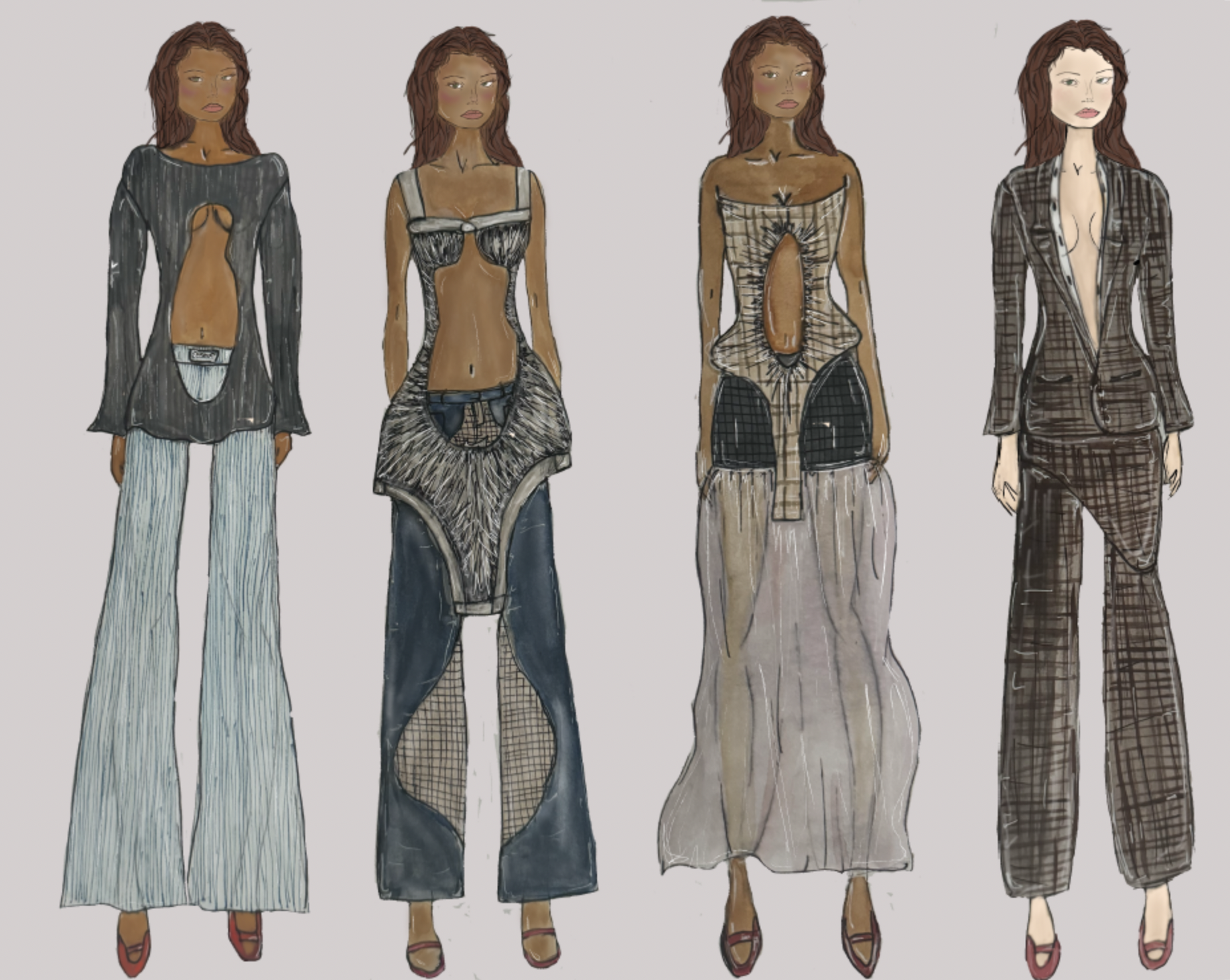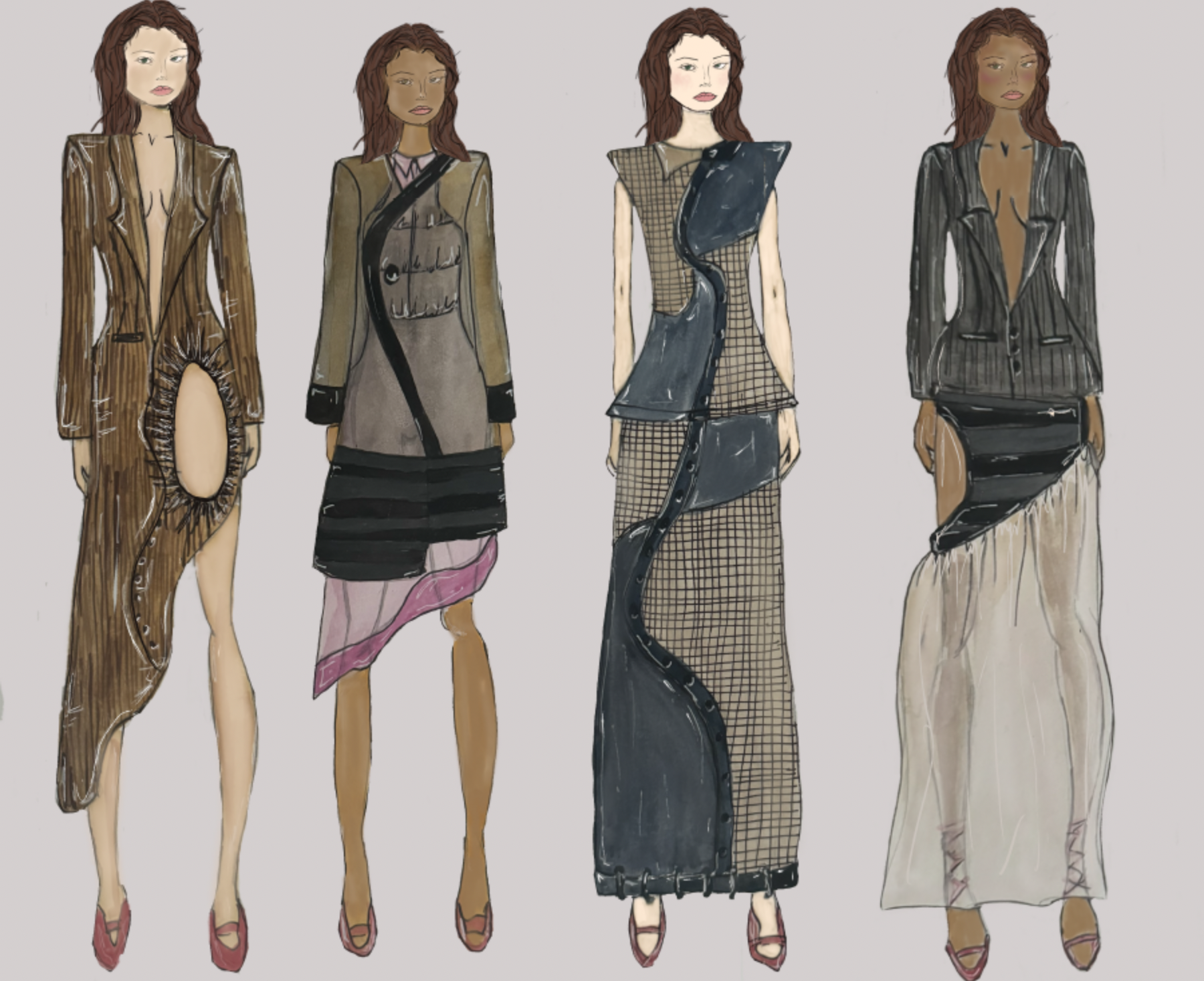 I aim to empower females to feel strong and confident. I combined masculine and feminine silhouettes in my collection that accentuate the woman's body, as I believe it is a way to showcase the essence of an empowered, successful, and independent woman.